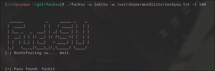 fssh -w rockyou.txt -u hacker -t 5